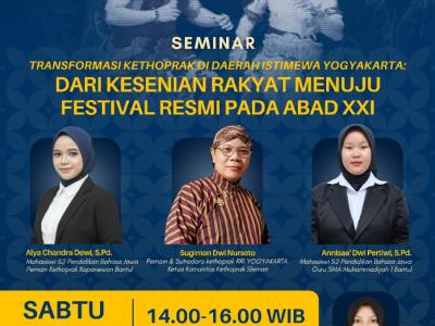 Capaian-Capaian yang pada tahun 2025 S2 Pendidikan Bahasa Jawa rutinm melaksanakan webinar kebudayaan. Kegiatan ini untuk webinar kebudayaan berfungsi sebagai sumber pembelajaran nonformal yang melengkapi proses pendidikan formal di perguruan tinggi, memperluas wawasan mahasiswa tentang sejarah...