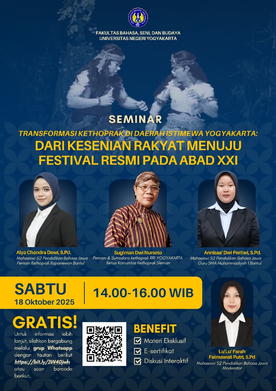 Capaian-Capaian yang pada tahun 2025 S2 Pendidikan Bahasa Jawa rutinm melaksanakan webinar kebudayaan. Kegiatan ini untuk webinar kebudayaan berfungsi sebagai sumber pembelajaran nonformal yang melengkapi proses pendidikan formal di perguruan tinggi, memperluas wawasan mahasiswa tentang sejarah, tradisi, nilai, dan ekspresi budaya, menguatkan pemahaman interdisipliner (antropologi, sejarah, sastra, seni, pendidikan, dan studi budaya) dan menjadi ruang diseminasi hasil riset kebudayaan, baik dari dosen, peneliti, maupun praktisi budaya.